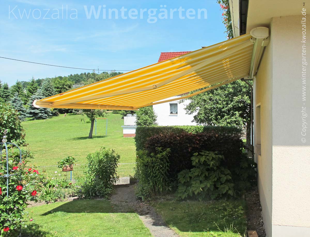 Markisen für den Anbau am Haus sollten möglichst hochwertig gewählt werden. Langlebige Modelle zeichnen sich durch eine äußerst stabile Gestellkonstruktion aus widerstandsfähigem Aluminium aus. Im ausgefahrenen Zustand können diese Terrassenmarkisen auch stärkerem Wind standhalten, ohne Beschädigungen befürchten zu müssen. Erkennbar ist die hohe Qualität des Gestells zum Beispiel an unauffälligen Schweißnähten: Statt dicker, auffälliger Wülste weisen hochwertige Modelle nur schmale Übergänge auf.